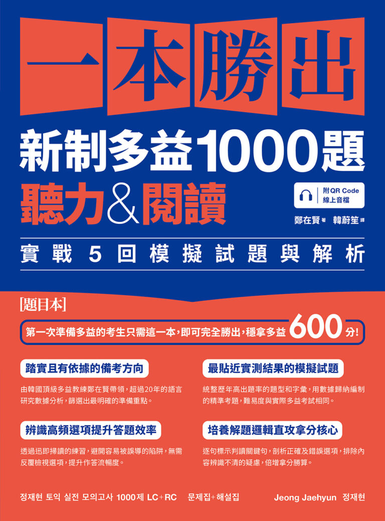 一本勝出新制多益1000題:聽力&閱讀實戰5回模擬試題與解析(題本+解析雙書裝)(附QR Code線上音檔)